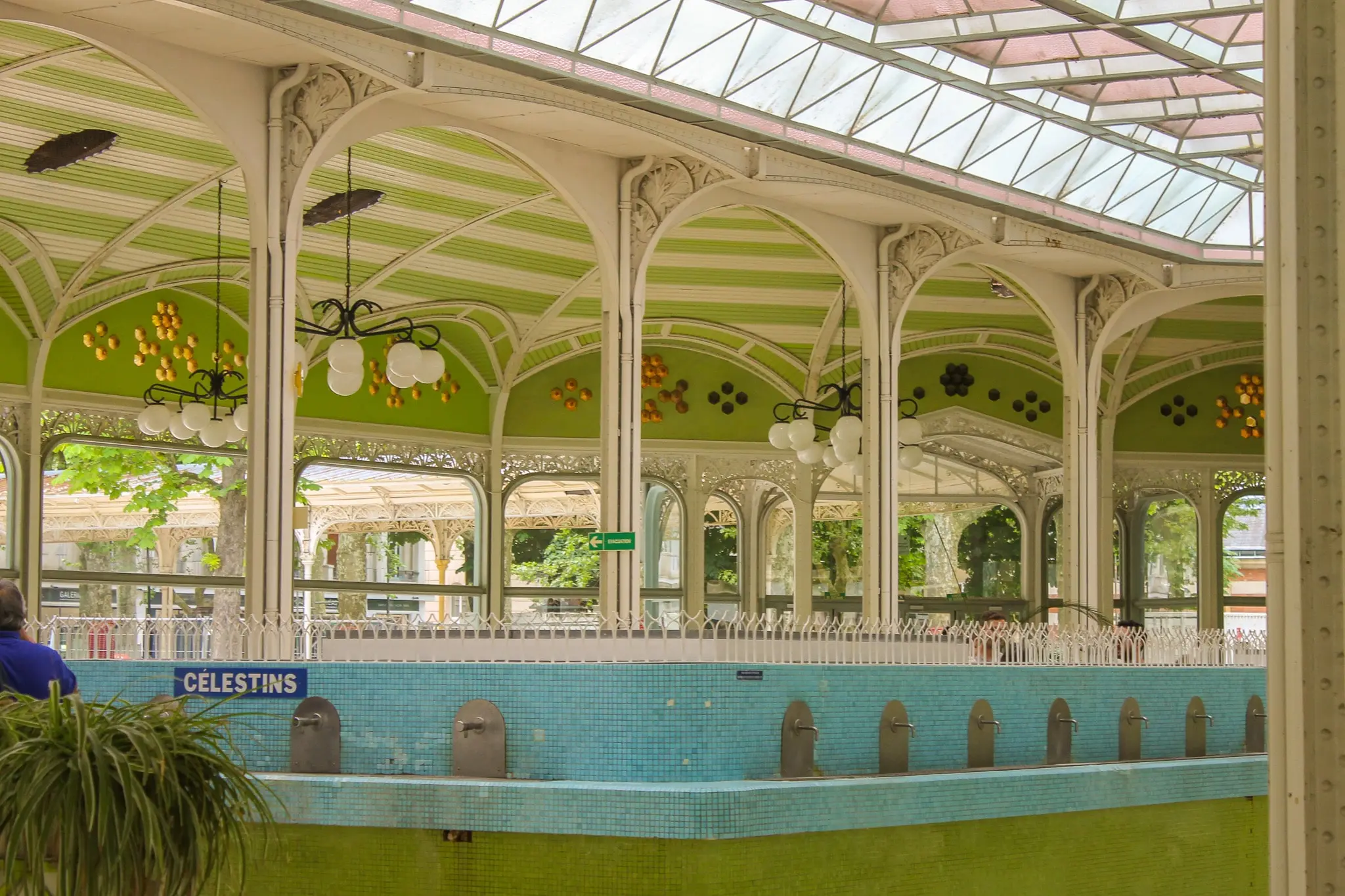 Construit en 1903 et comme son nom l’indique, ce hall en structure métallique propose aux curieux de goûter aux diverses eaux dont jouit la ville. D’ailleurs on y retrouve la Source des Célestins dont on a parlé plus haut, en libre accès gratuitement ! En plus il y a aussi quatre autres sources, mais seulement accessibles aux curistes. Mais pas de panique, si vous n’êtes pas curistes vous pouvez vous consoler en profitant du spectacle qu’offrent les sources sous leurs cloches : ça bouillonne bien !